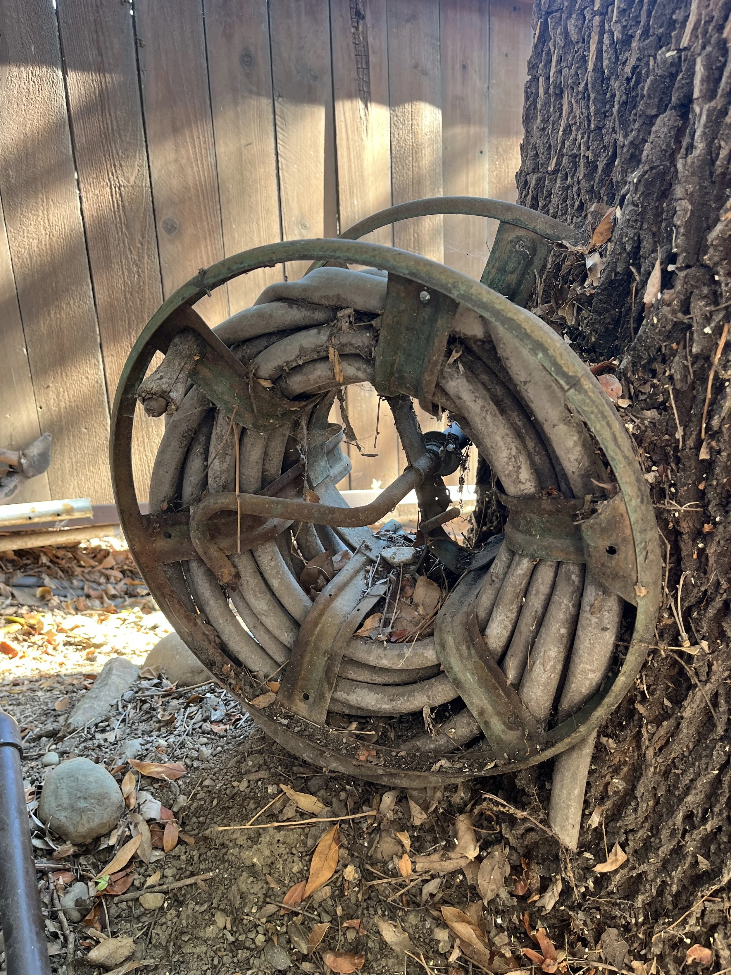 In case you’re wondering… YES. The tree grew around the hose reel, and now they are one piece. I wonder how many years it took for that to happen.